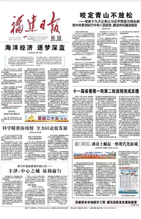 廈門藍(lán)灣科技榮登《福建日?qǐng)?bào)》頭版頭條